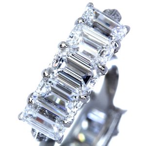 ラウンドカットなどのブリリアントカットの輝きも無論、美しいですが、エメラルドカットの放つ特別の美しさは