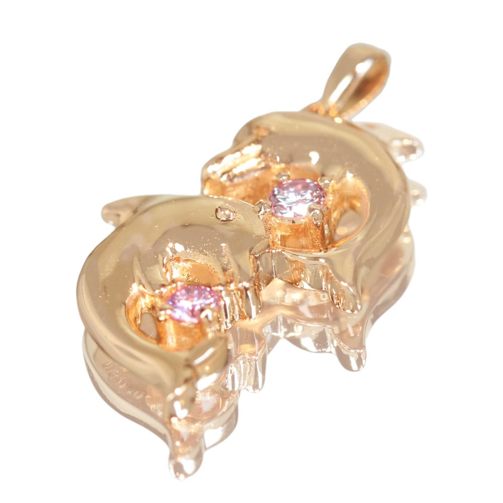 【HANAMADE】K18PG ピンクダイヤモンドFANCY PURPLISH PINK VS2 0.037ct/FANCY LIGHT PINK SI1 0.05ct ペントップ いるか[中央宝石研究所]