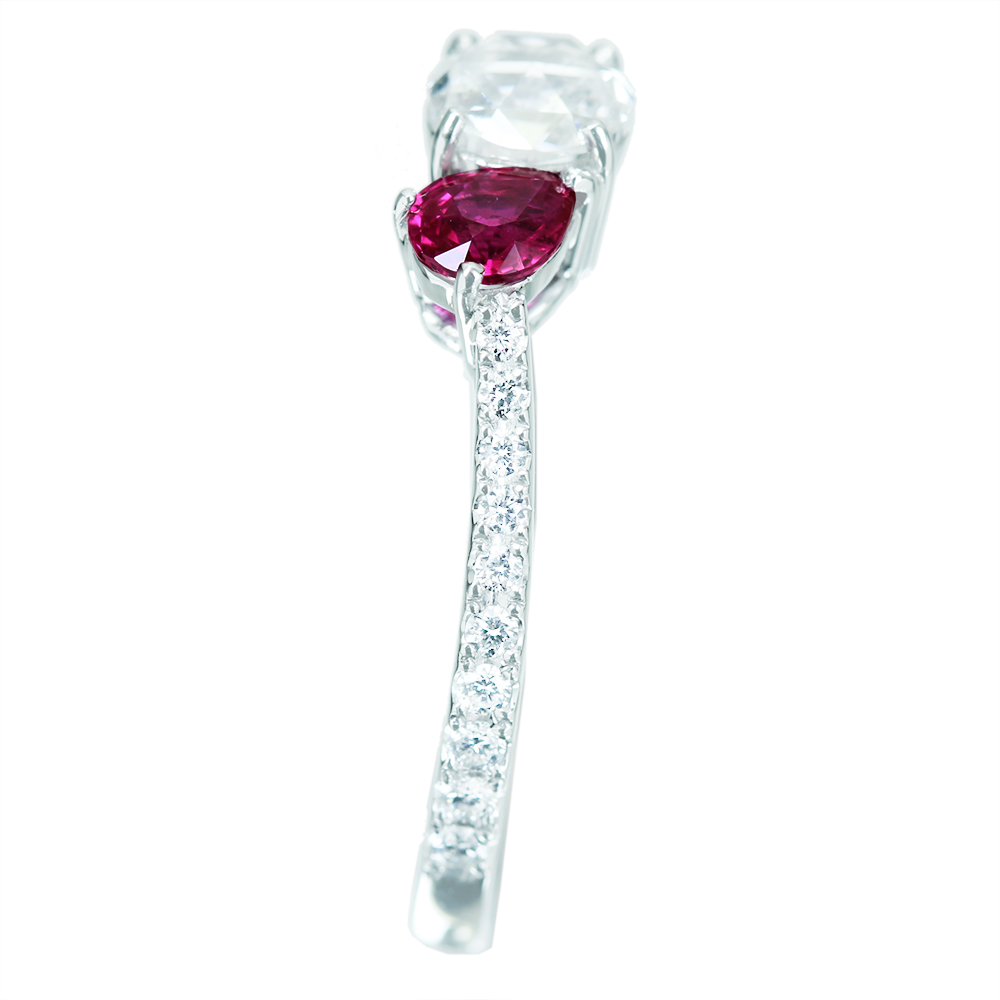 【HANDMADE】《FORTUNE RING》PT950 非加熱 ピジョンブラッドルビー 0.24ct ローズカットダイヤモンド 0.363ct F SI2 ダイヤモンド 0.137ct リング [AIGS][中央宝石研究所]