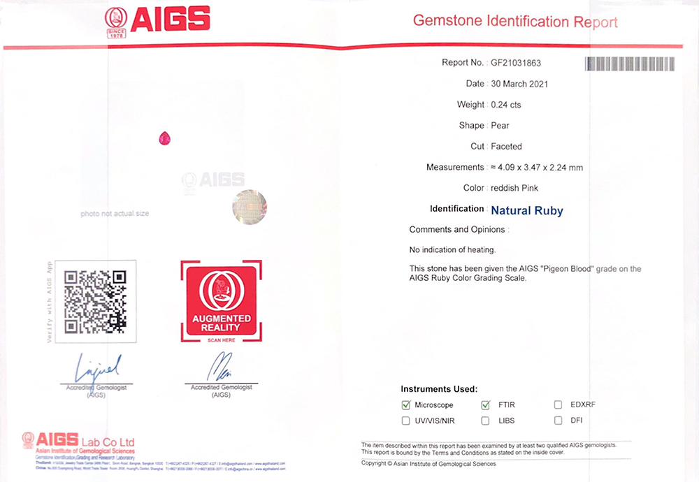 中石:非加熱ピジョンブラッドルビー 0.24ct