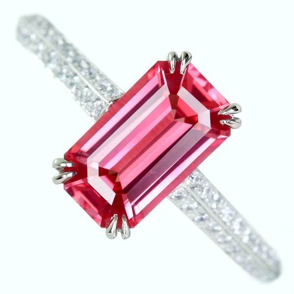 【HANDMADE】【大粒】PT950 ピンクスピネル 1.63ct ダイヤモンド 0.186ct リング ストロベリーピンク エメラルドカット
