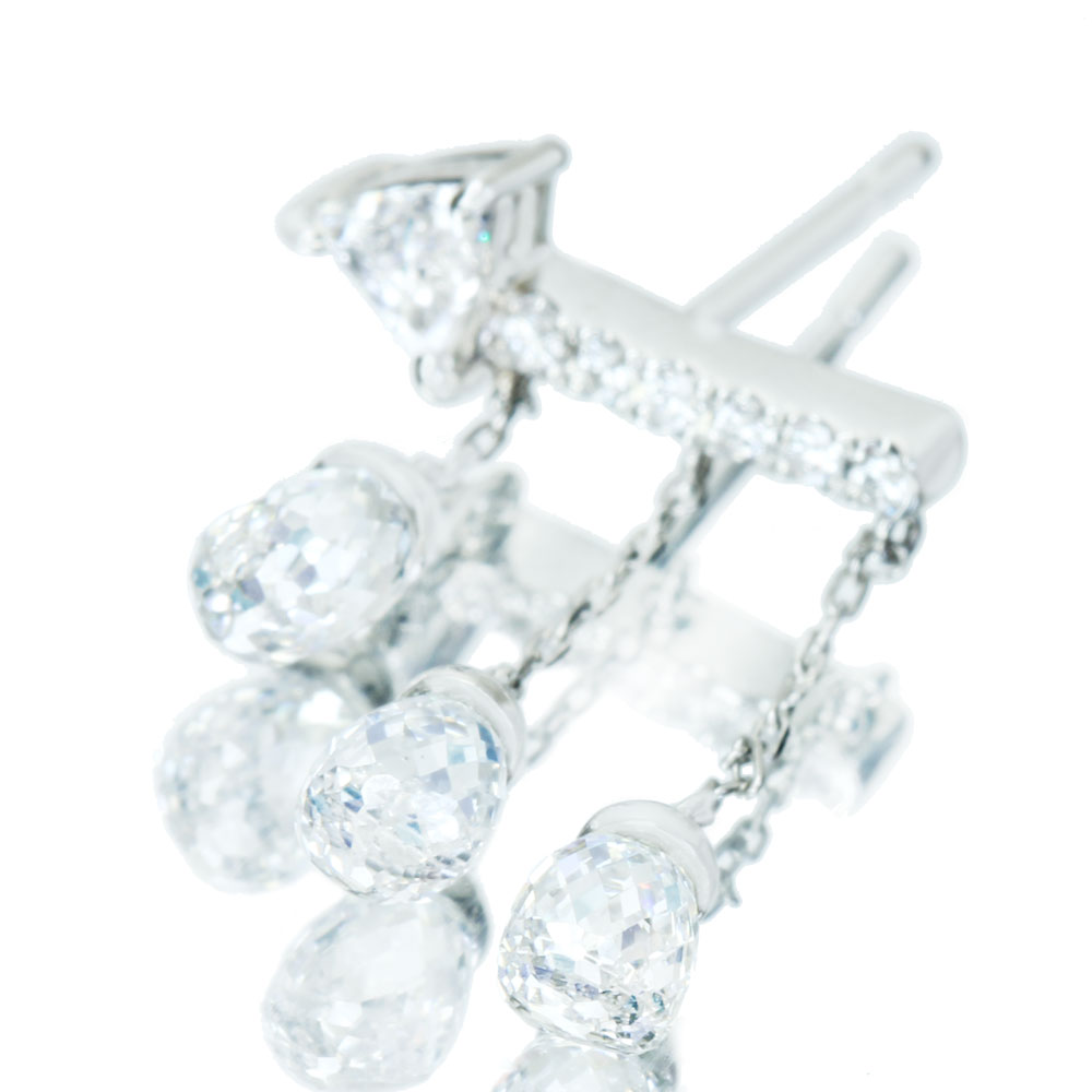 瑞々しい輝きに満ちたブリオレットカットのダイヤモンドが