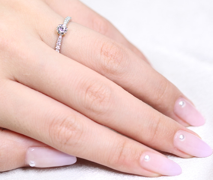 周りにあしらわれたカラーレスダイヤモンドとのコントラストも