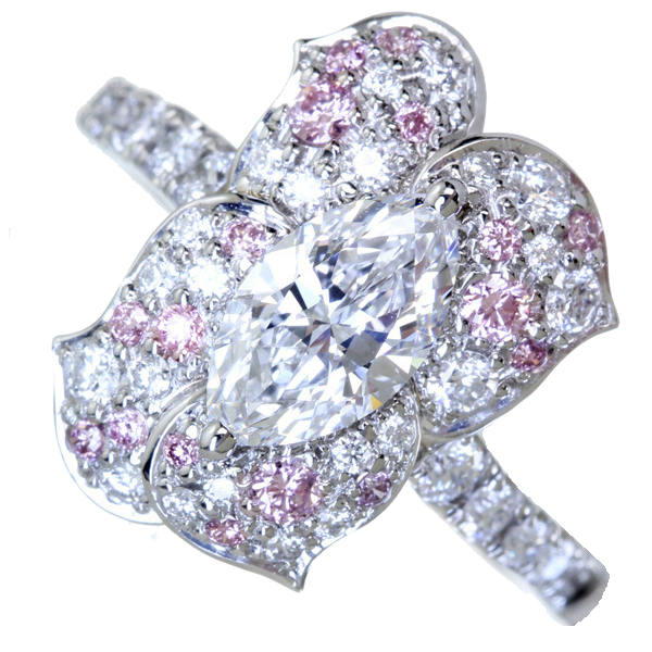 価値の高いナチュラルピンクダイヤモンドを配した、美しいフラワーデザイン。