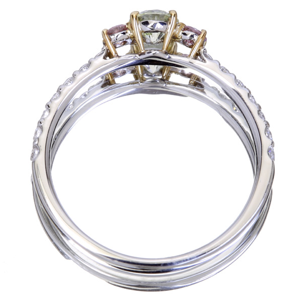 【HANDMADE】天然グリーンダイヤ リング 0.271ct LIGHT YELLOW GREEN SI2/ピンクダイヤ 0.053ct FANCY PINK VS2/0.056ct FANCY PINK SI1 PT950/ダイヤモンド 0.18ct K18※CGLソーティングシート