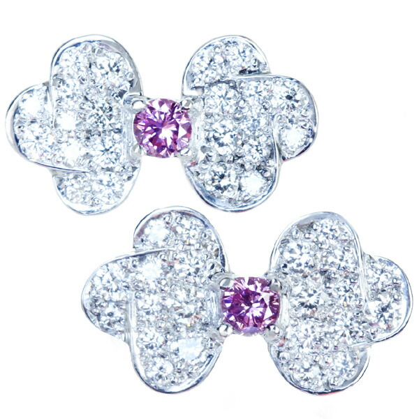 【HANDMADE】 PT950 ピンクダイヤモンド ピアス FANCY INTENSE PURPLISH PINK 0.083ct/0.075ct ダイヤモンド ピアス インテンスピンク 天然ピンクダイヤモンド “CLOUD with Diamonds”