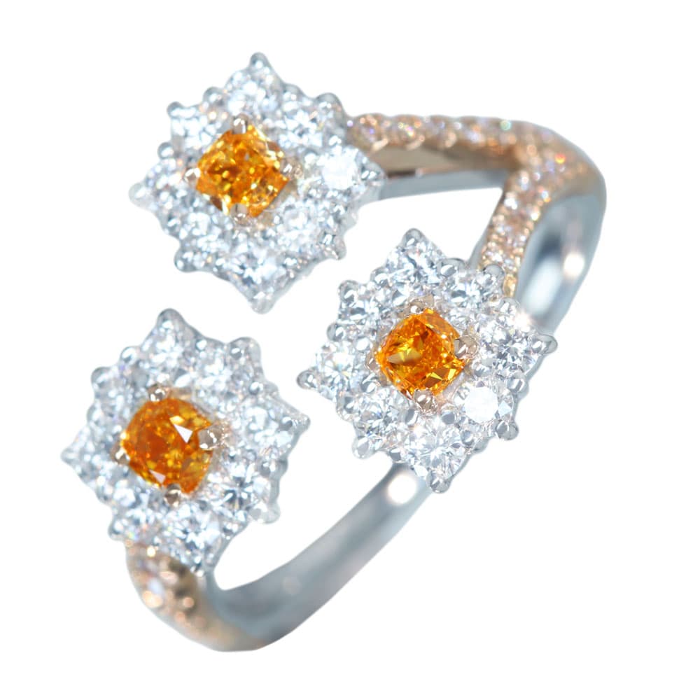 【HANDMADE】 PT950/K18PG オレンジダイヤモンド FANCY VIVID YELLOW ORANGE 0.111/0.157/0.113ct ダイヤモンド 0.808ct リング[中央宝石研究所]