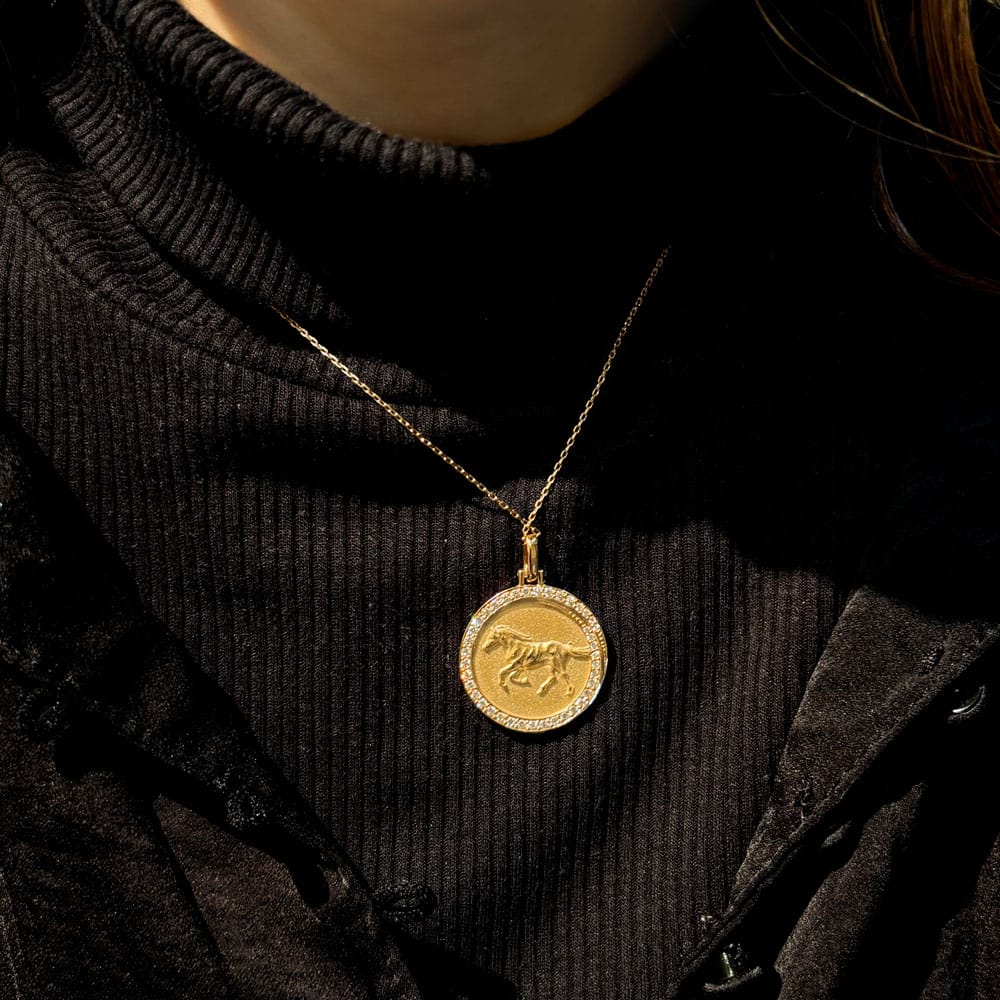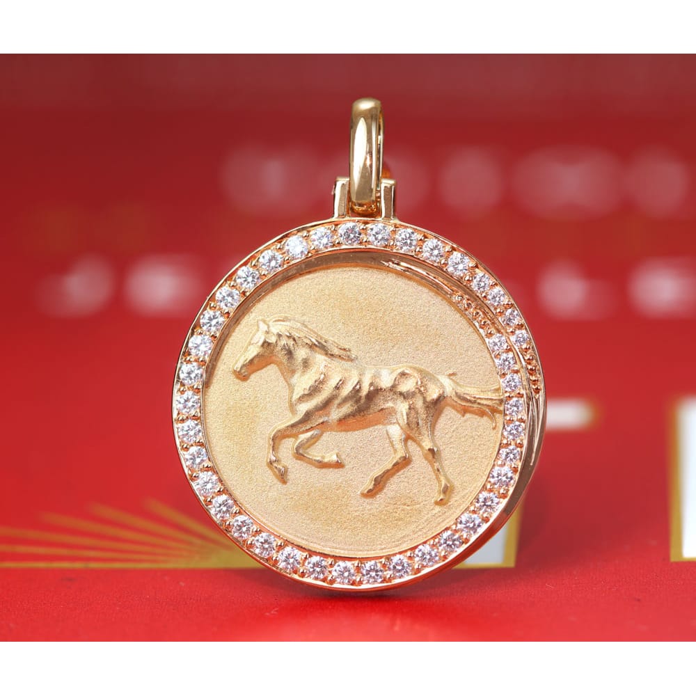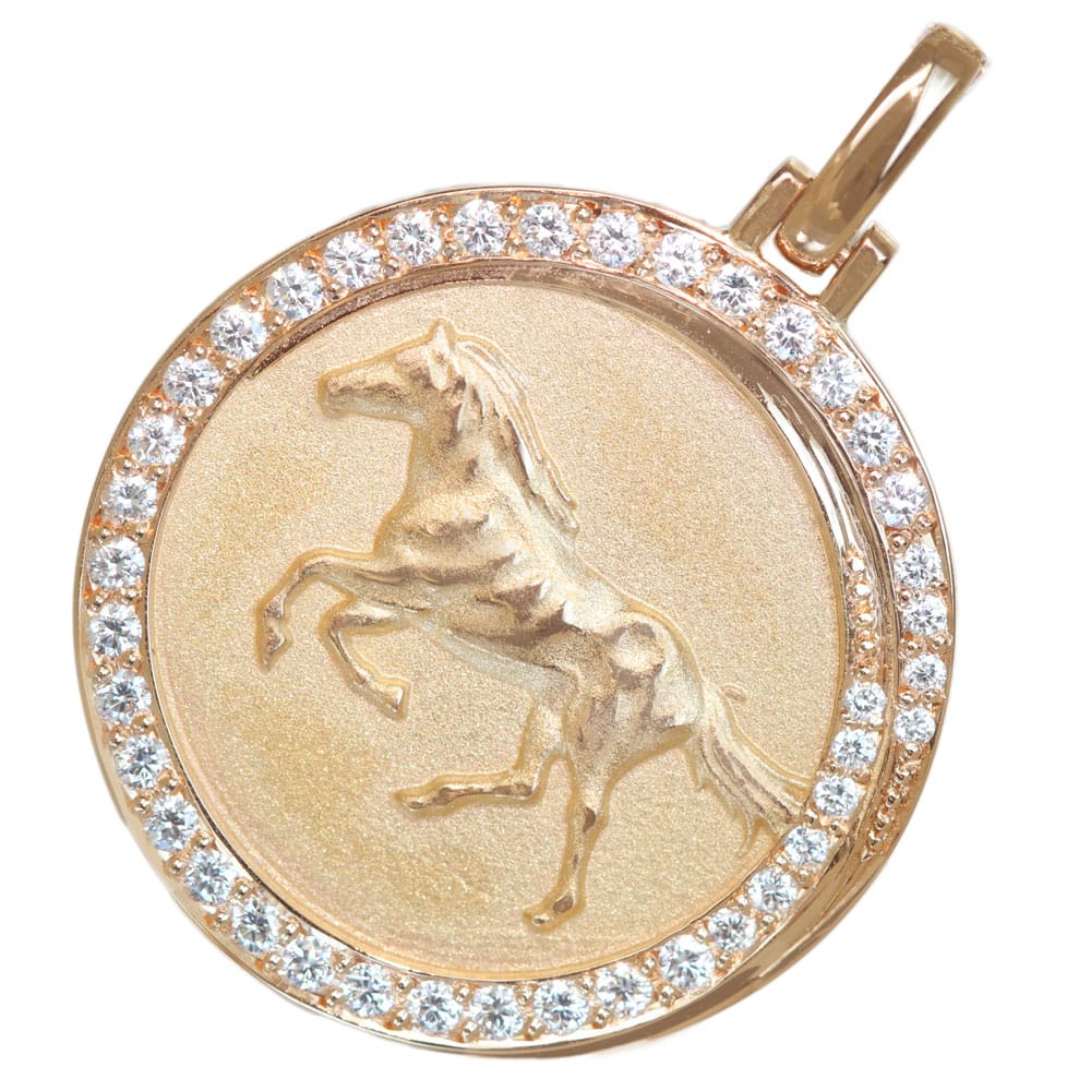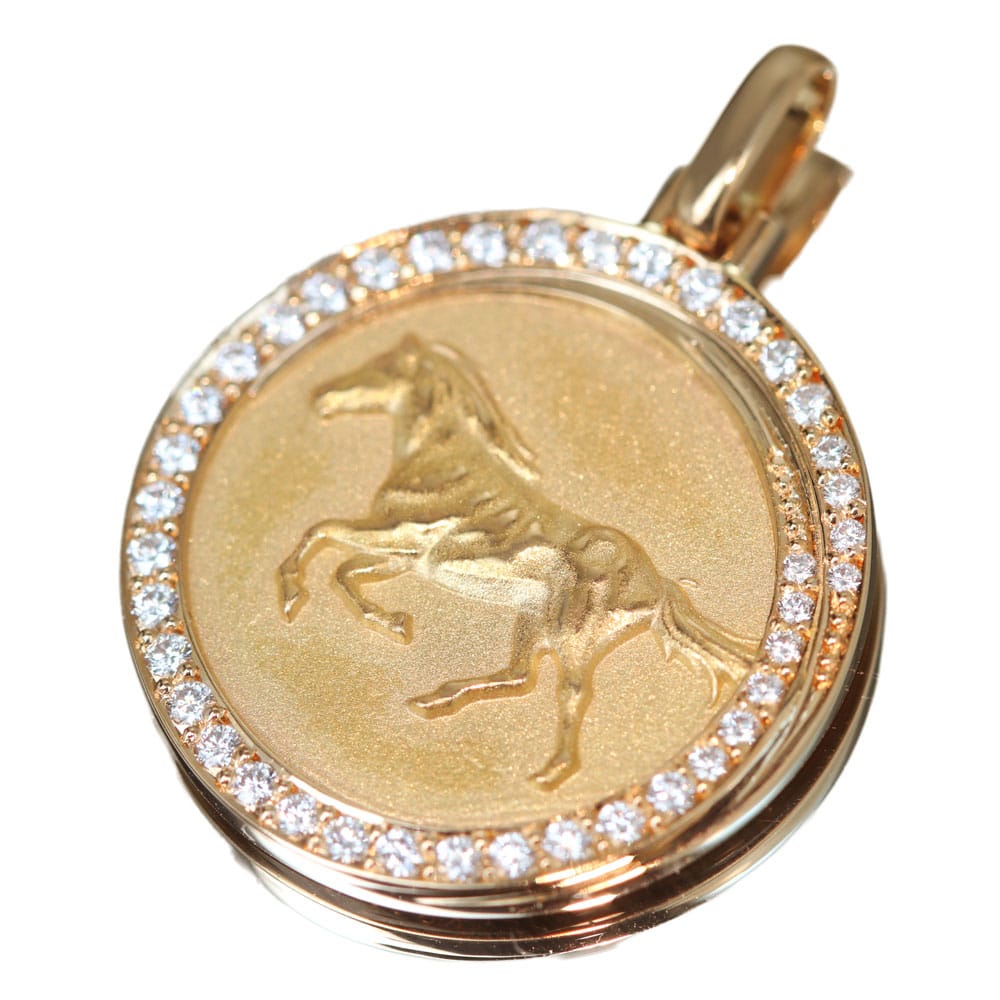 【HANDMADE】18PG ホース コイン ダイヤモンド 0.281ct 馬 オリジナル