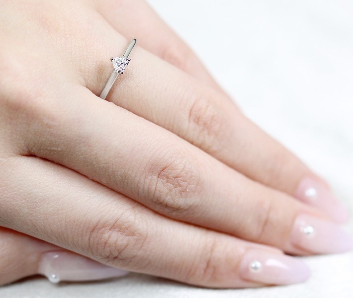 ハートシェイプのダイヤモンドの、凛とした美しさがこめられたリング。