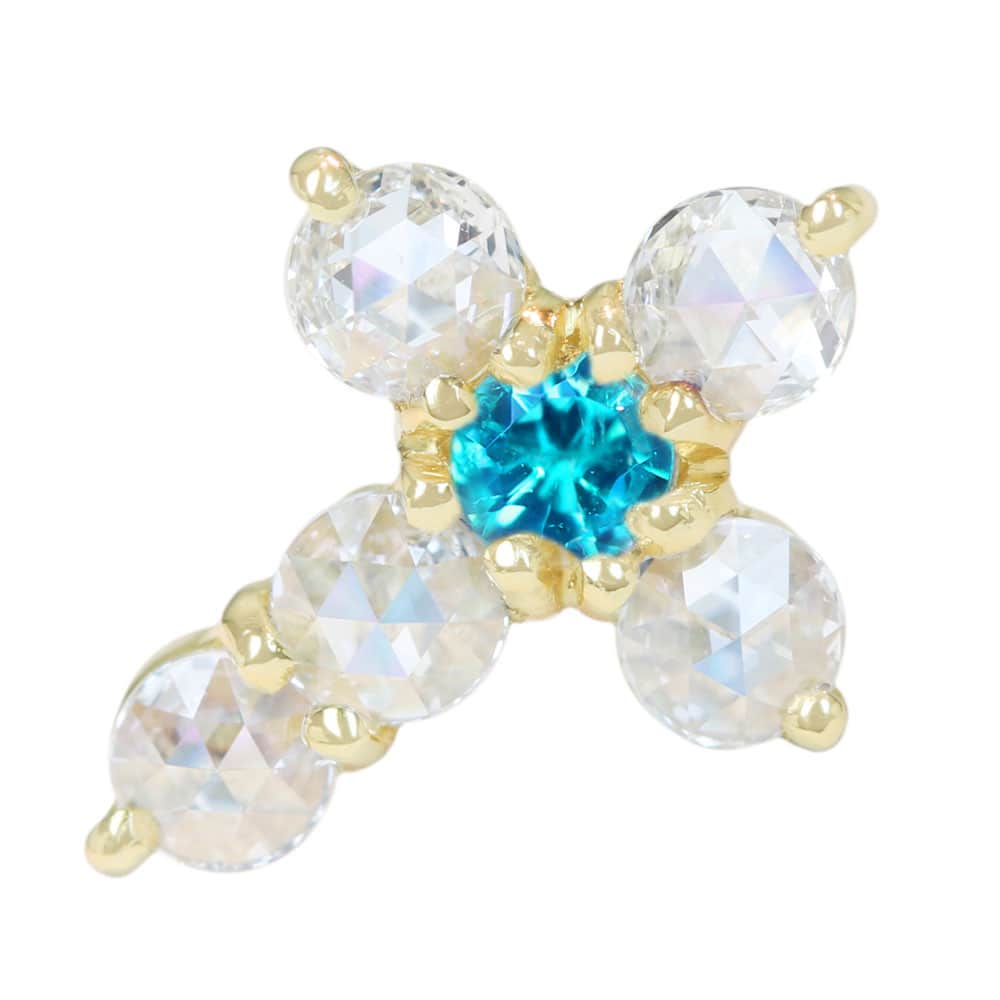 【HANDMADE】K18 ブラジル産パライバトルマリン 0.06ct ローズカットダイヤモンド 0.205ct ペンダントトップ クロスデザイン