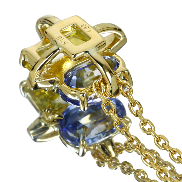 【HANDMADE】K18 非加熱ブルーサファイア/非加熱イエローサファイア total1.83ct ネックレス クアトロクロス