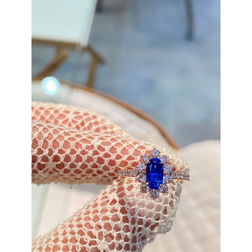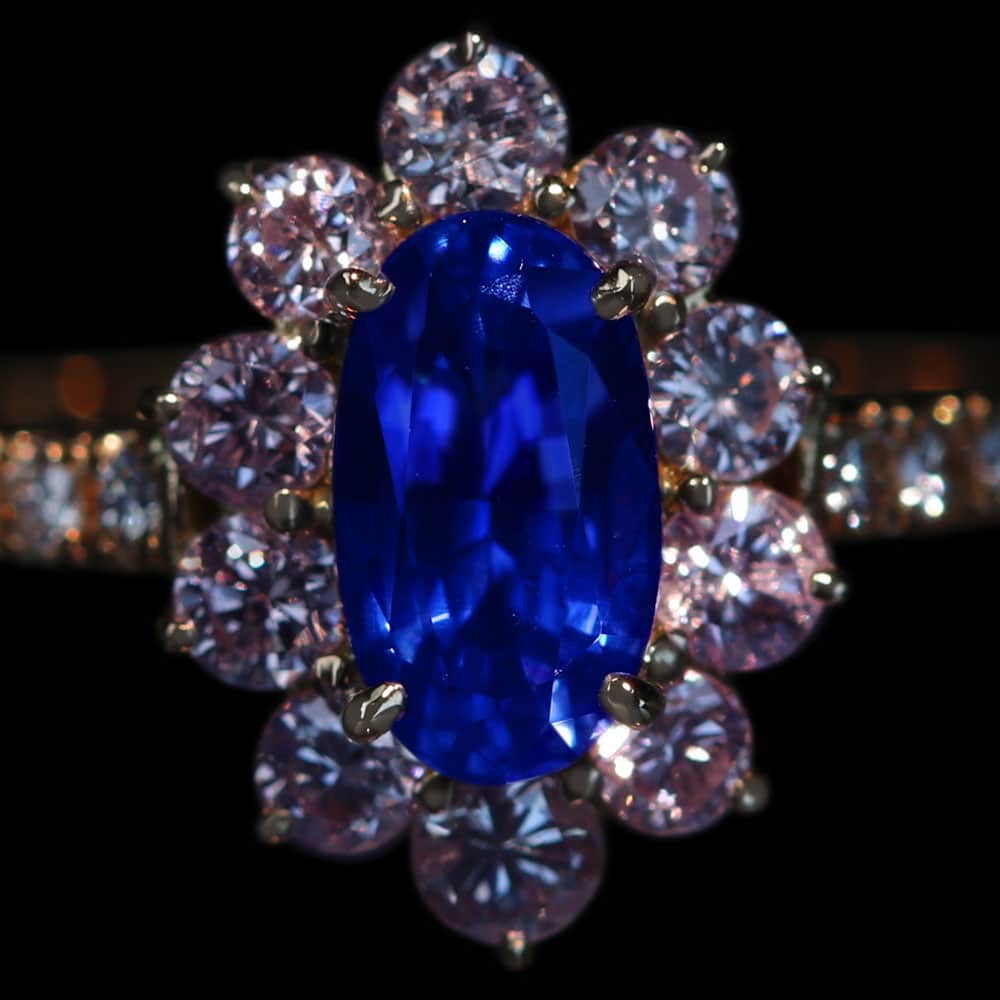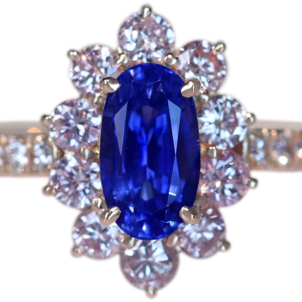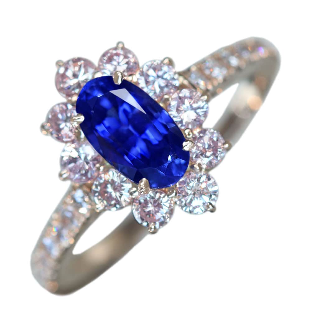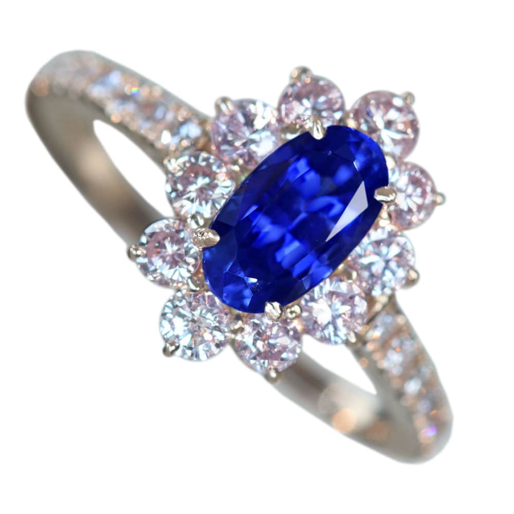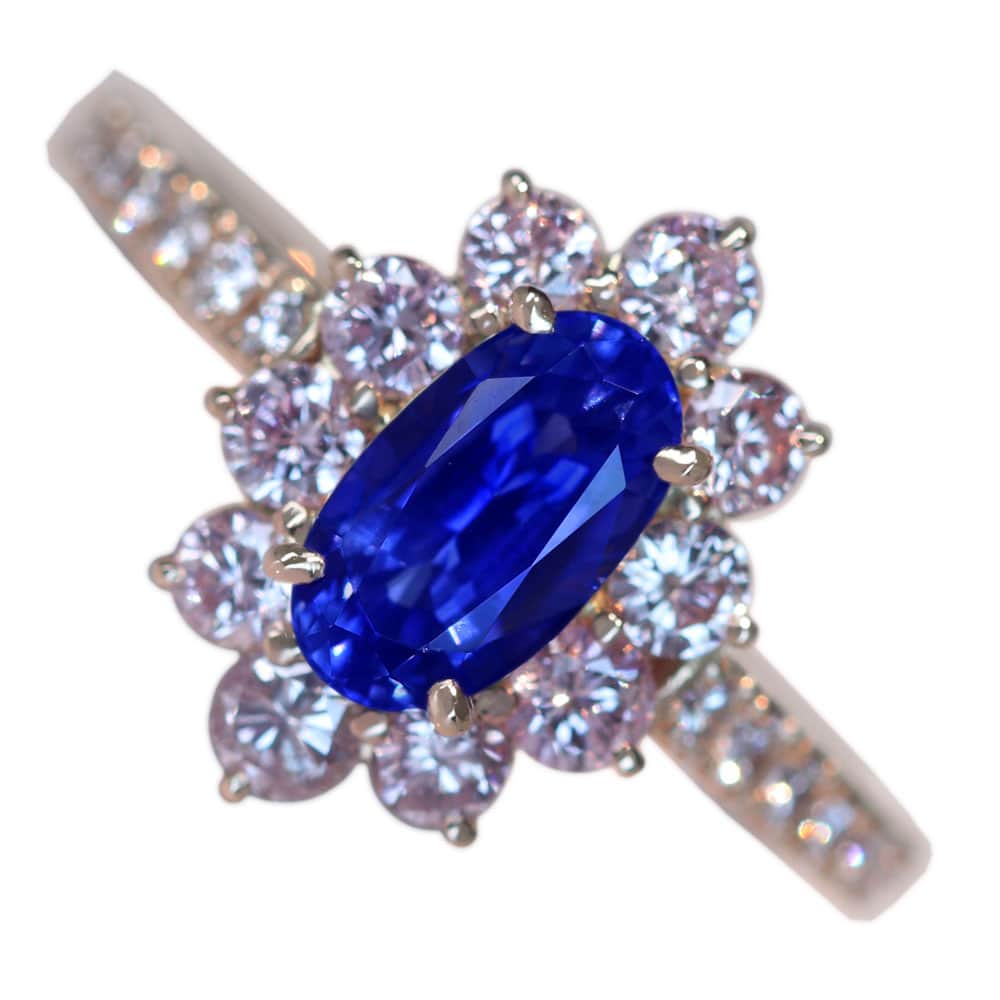 【HANDMADE】K18PG スリランカ産非加熱ブルーサファイア 1.30ct ピンクダイヤモンド total0.636ct ダイヤモンド 0.17ct リング[GIA/中央宝石研究所]