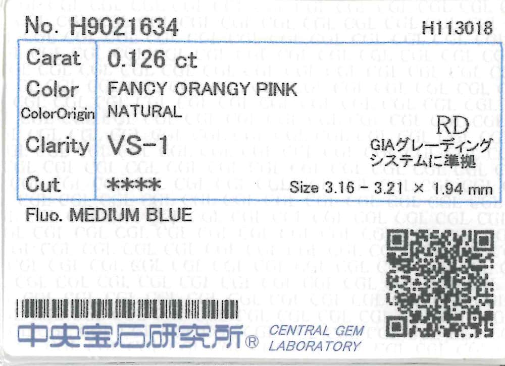 0.126ct FANCY ORANGY PINK VS-1