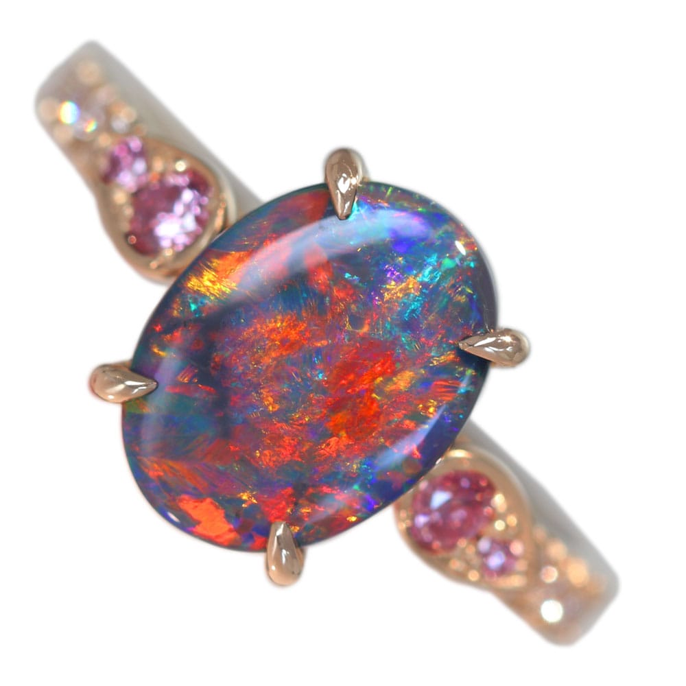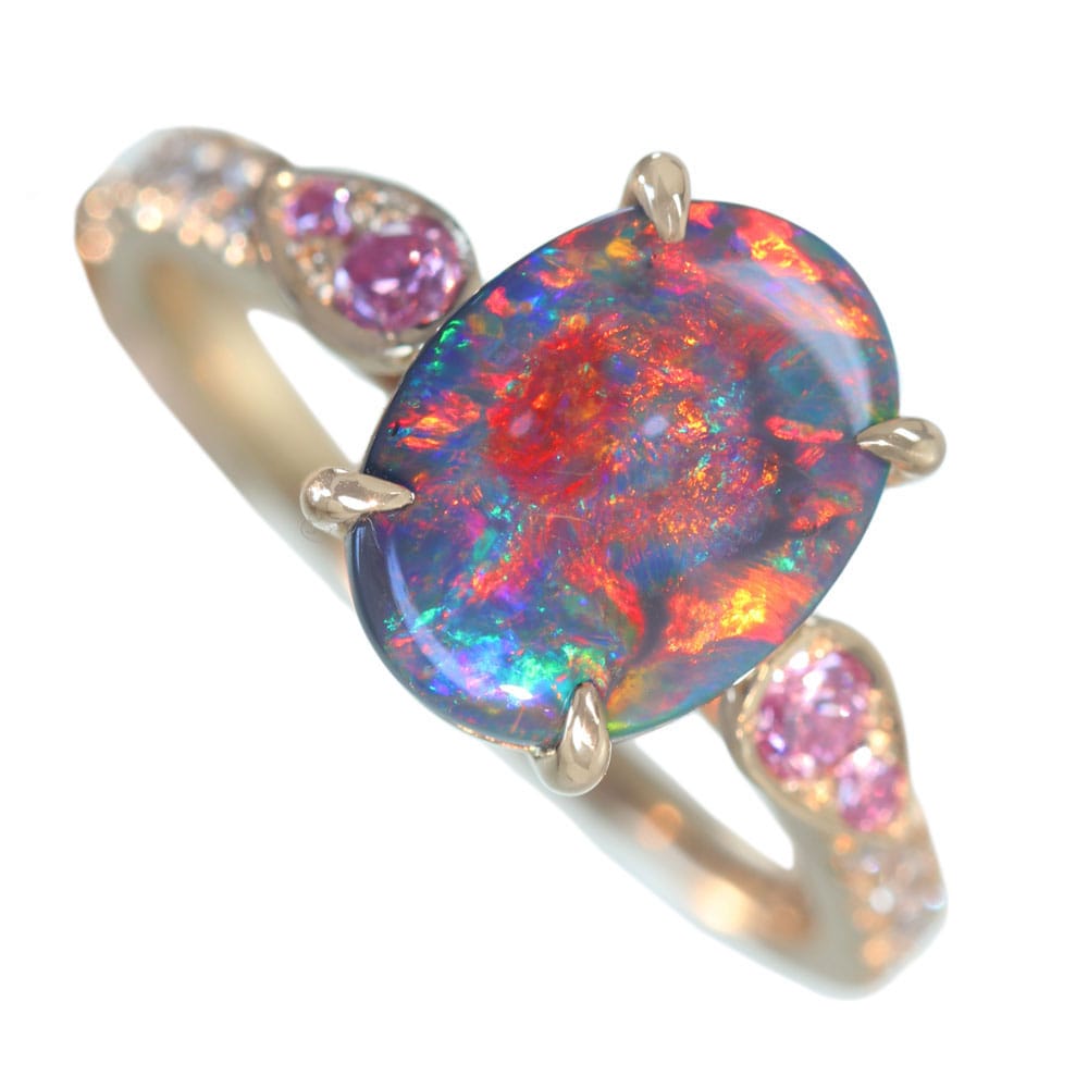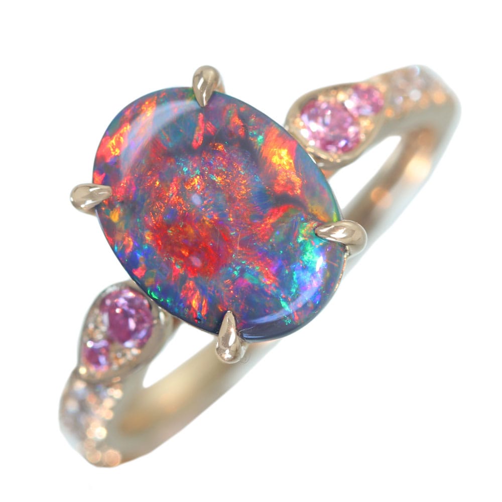 【HANDMADE】K18PG ブラックオパール 1.65ct ピンクダイヤモンド 0.055ct/0.053ct ダイヤモンド 0.25ct リング
