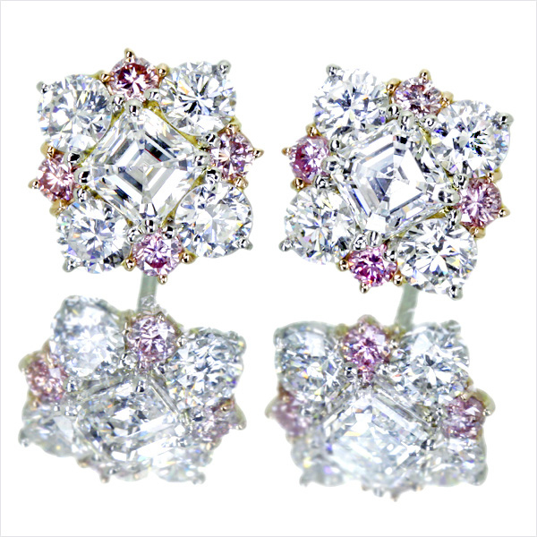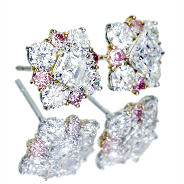 D IF 0.5ctのダイヤモンド、さらにピンクダイヤモンドをあしらい端正な美しさが際立つ上質のピアスをお造り致しました.