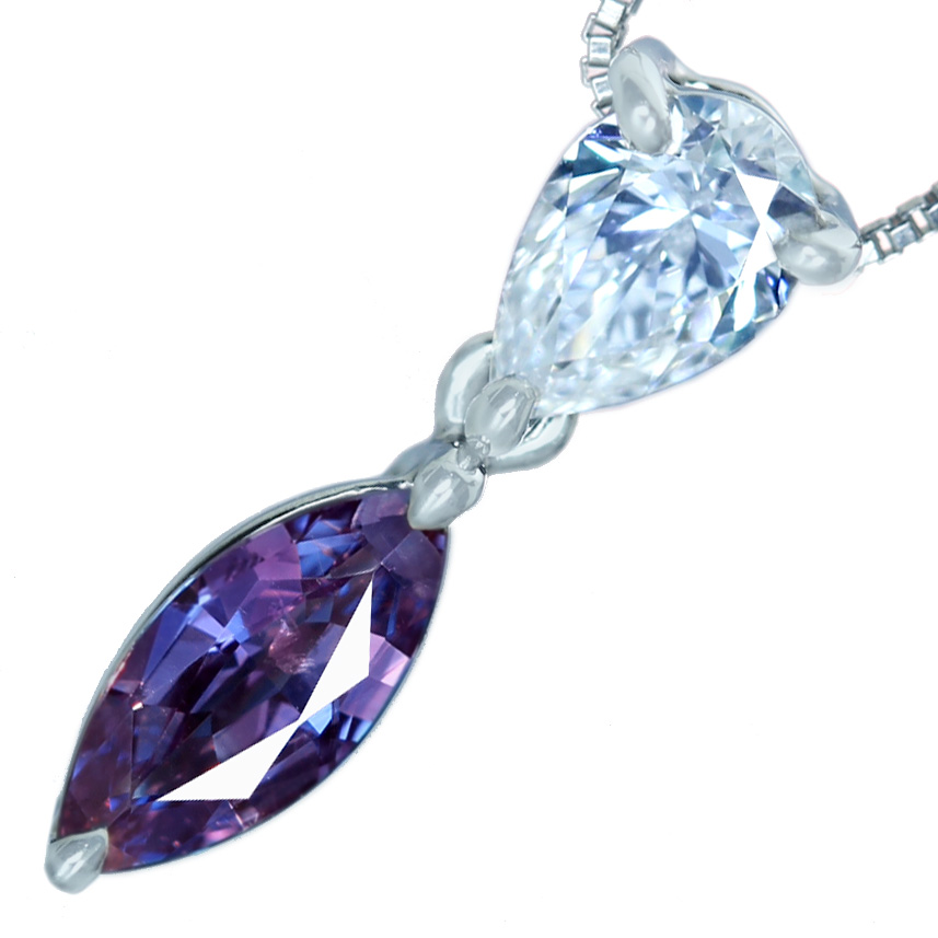 【HANDMADE】PT900 アレキサンドライト 0.370ct マーキスカット ダイヤモンド 0.264ct E VS-2 ペアシェイプ ペンダントトップ