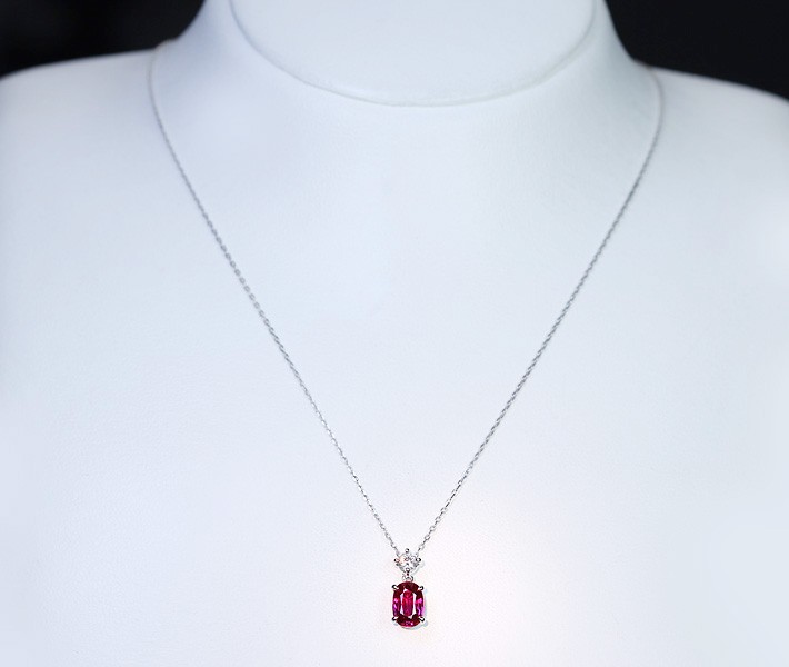 【HANDMADE】PT900 非加熱ルビー 1.31ct ダイヤモンド 0.152ct E SI2 ペンダントトップ ノーヒートルビー オーバル 1ctup