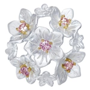 【HANDMADE】PT900/K18PG 天然ピンクダイヤモンド 0.36ct ペンダントトップ 桜モチーフ[CGL]