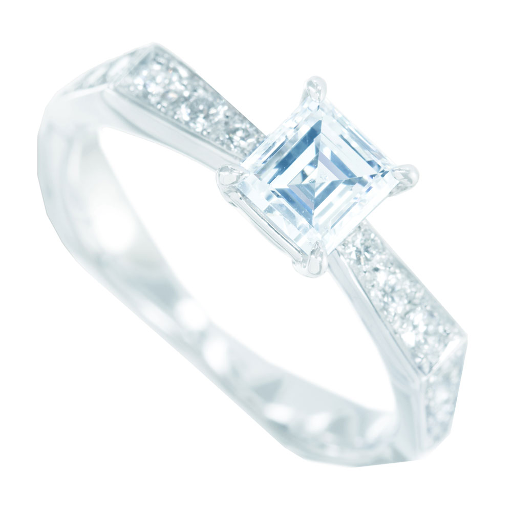 センターストーンのカットも相まって都会的で現代的な美しさ。