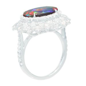 開いたデザインの中央に堂々と鎮座するブラックオパール。