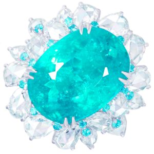 ぱっと目を引くパライバの色彩とネオン。ダイヤモンドの虹彩。