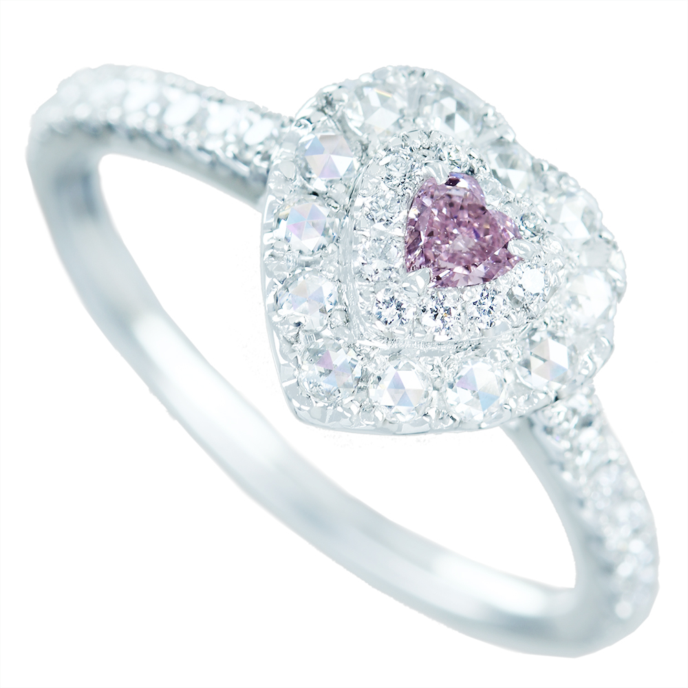ハートシェイプにこっくりと宿されたピンクダイヤモンド。