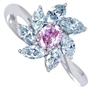 【HANDMADE】PT950 0.25ct FANCY PURPLISH PINK SI2ピンク&グリーンダイヤモンドフラワーモチーフリング