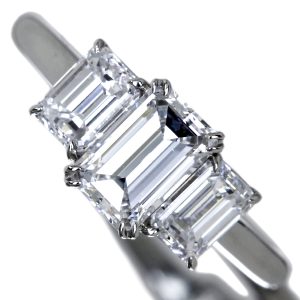 【HANDMADE】PT950 0.806ct E VVS2 /0.466ct D VS2/0.456ct E VS2 エメラルドカットダイヤモンド リング