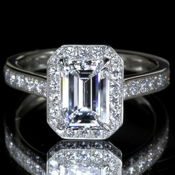 リングを少し動かすだけでも、忘れられない、愛しいきらめきに満たされるエメラルドカットのダイヤモンド。