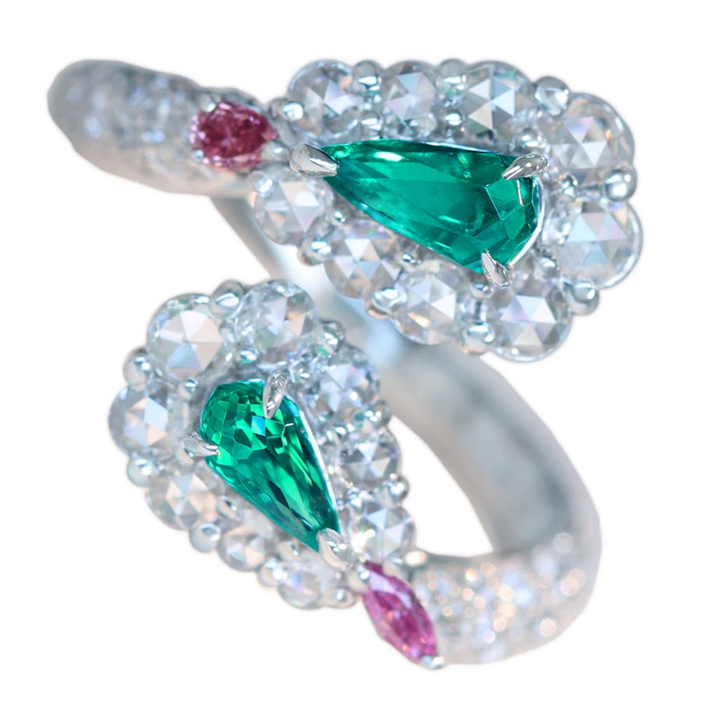 これほどまでにコロンビア産のエメラルドの美しさを感じていただけるジュエリーは他に無いとお伝えできる、見事なリング。