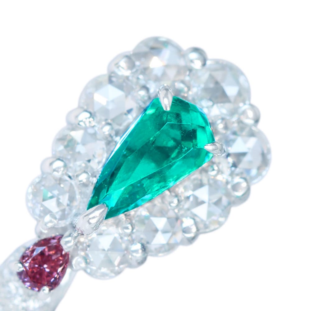 手にはめて頂いた際に、思いもよらない、大きなエメラルドの美しさと圧倒的に強い煌めきに感動していただけるジュエリーに完成しました。