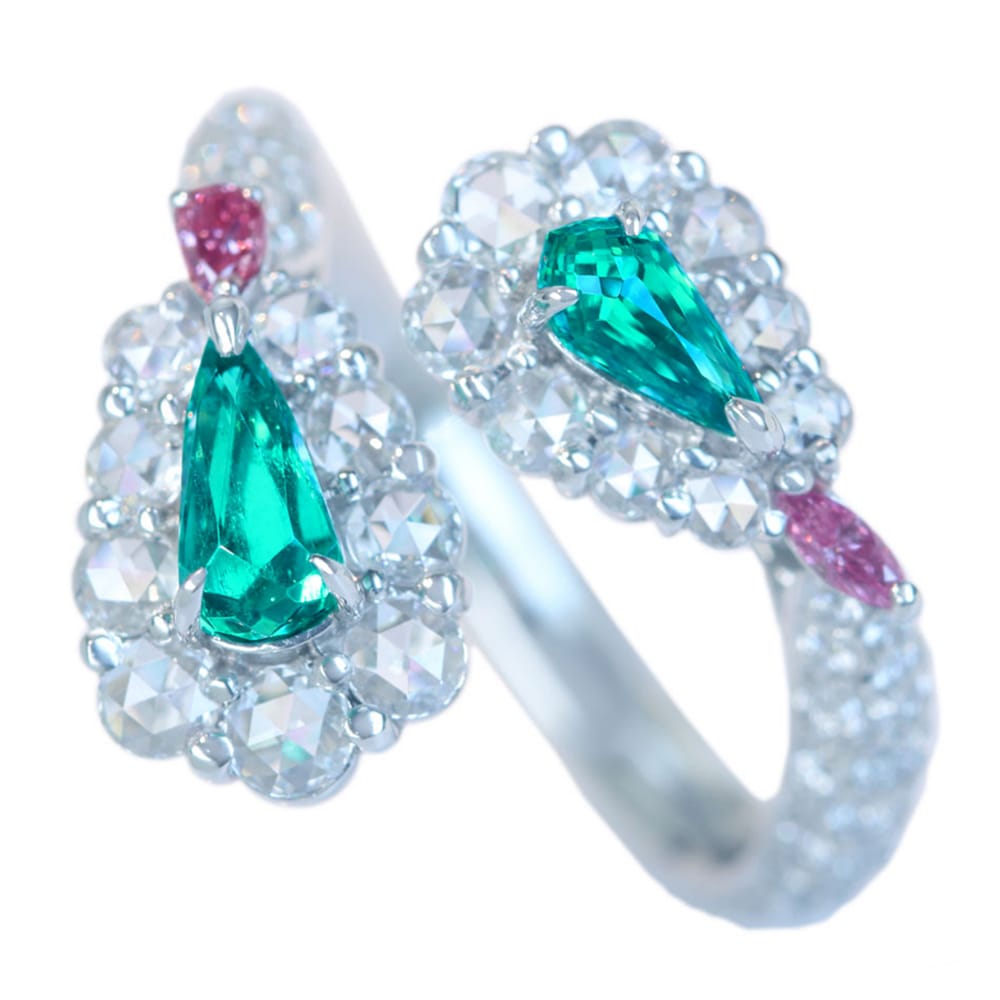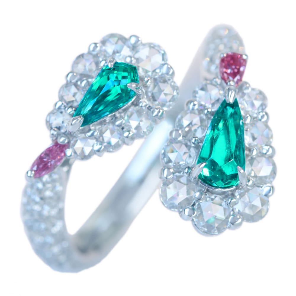 ですが、今回はこの珍しく貴重な美しいコロンビア産のノンオイルエメラルドをピンクダイヤモンドの素晴らしい美しさと共に、リングにお仕立ていたしました。
