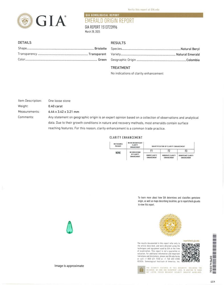 ブリオレットカットエメラルドをリングにセットしましたので、コロンビアエメラルドの、神聖なエメラルドグリーンを、心ゆくまで「立体的に」、ご鑑賞いただけるジュエリーに完成しています。