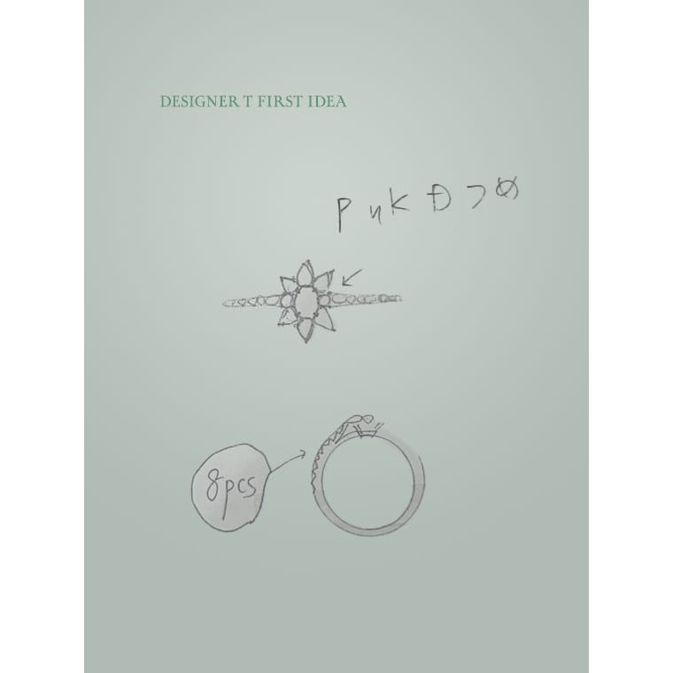 ローズカットダイヤモンドがグラッシィな美しさをみせて、上品で気高い様子を引き立てます。