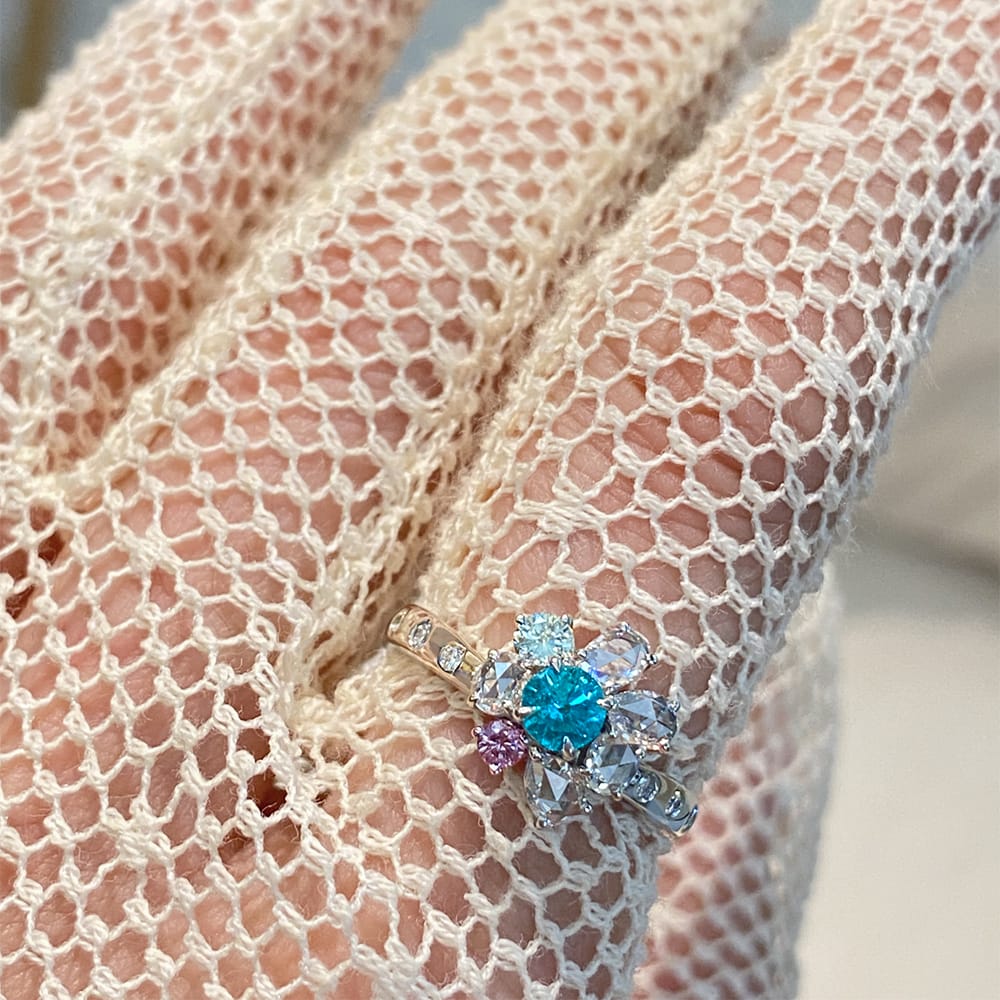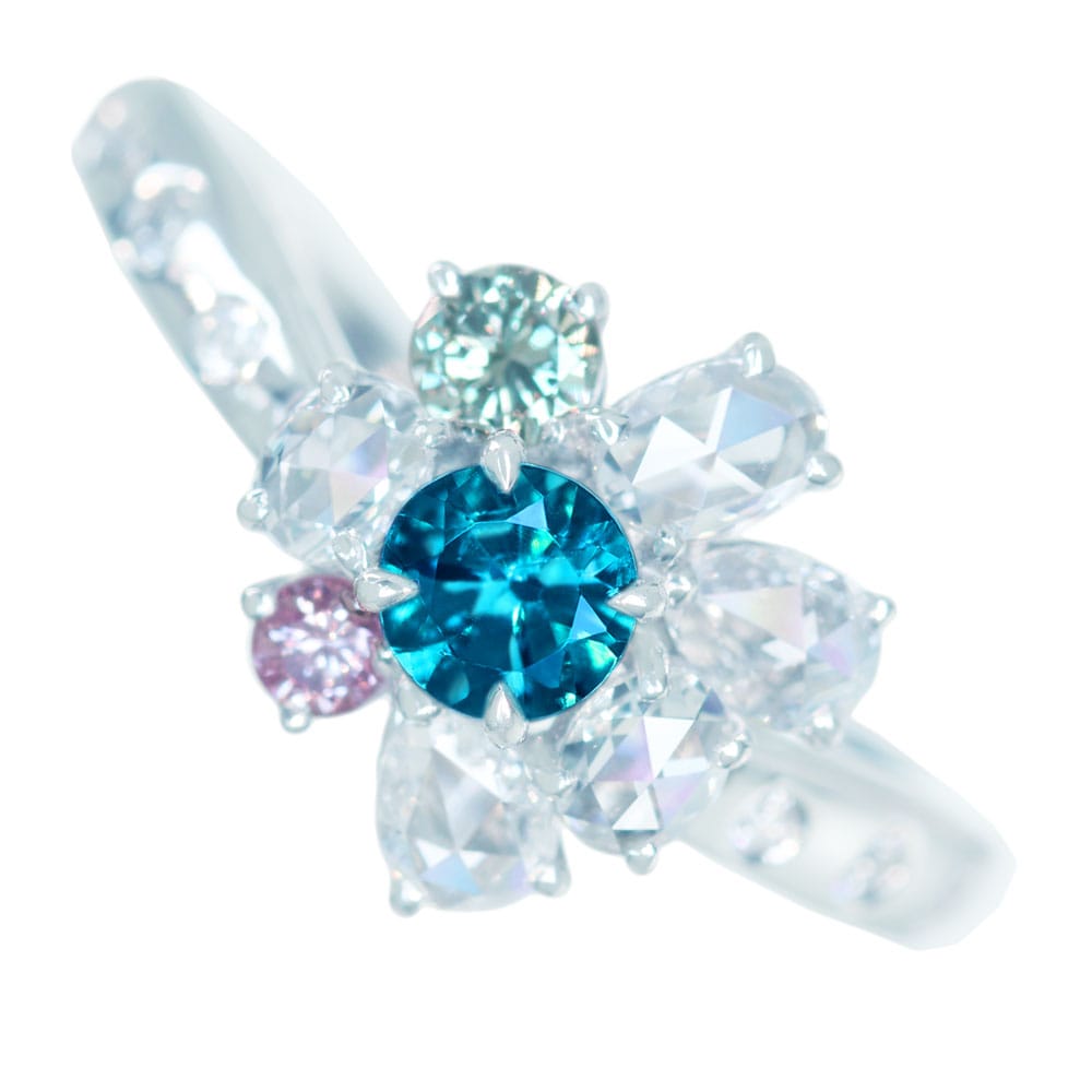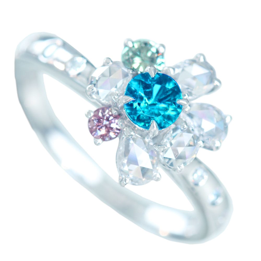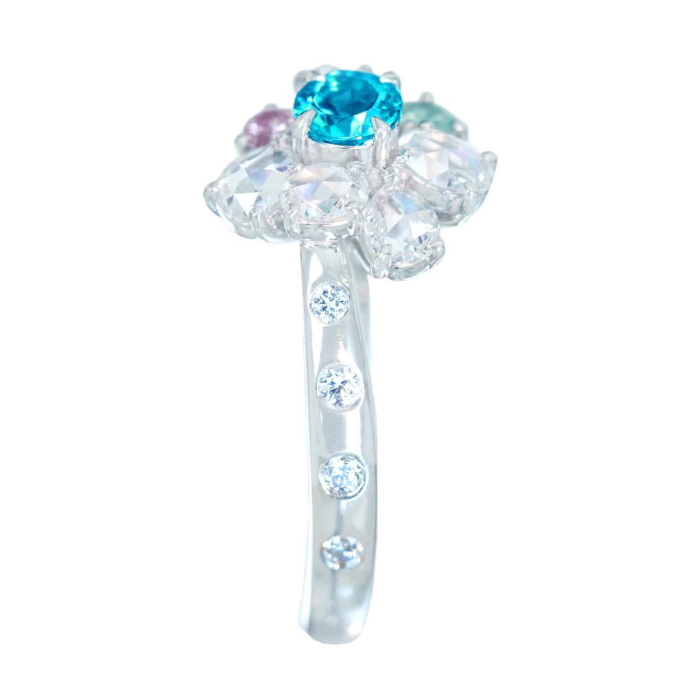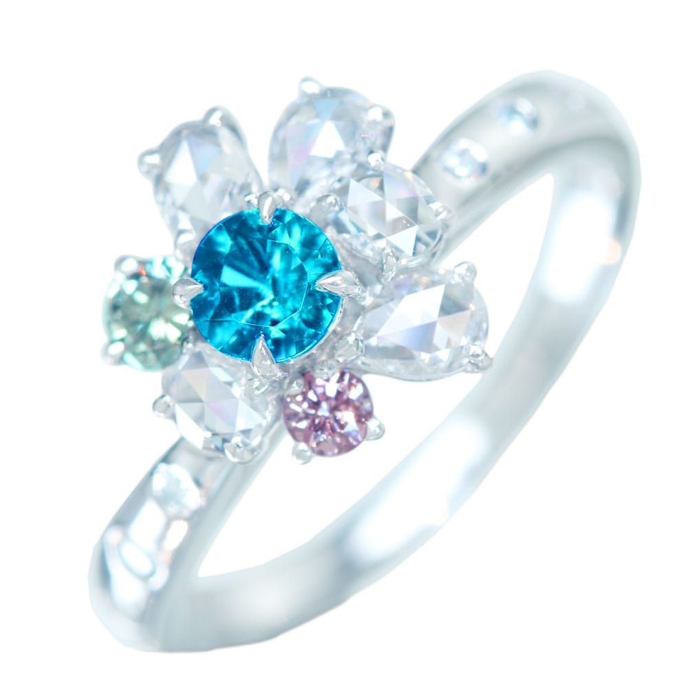 【HANDMADE】PT950 パライバトルマリン 0.264ct グリーンダイヤモンド 0.097ct ピンクダイヤモンド 0.052ct ダイヤモンド 0.59ct リング