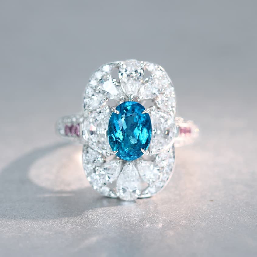 【HANDMADE】PT950 パライバトルマリン 1.44ct ピンクダイヤモンド 0.116ct ダイヤモンド 2.108ct リング [GIA/AGT]