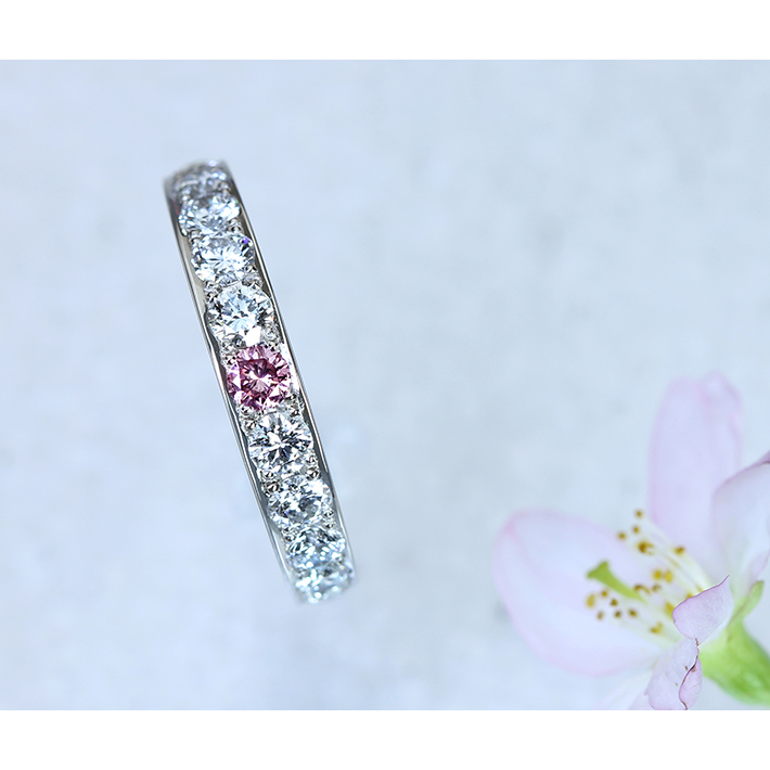 煌めきの連鎖が引き立てあい、ピンクダイヤの美しさをさらに引き出す