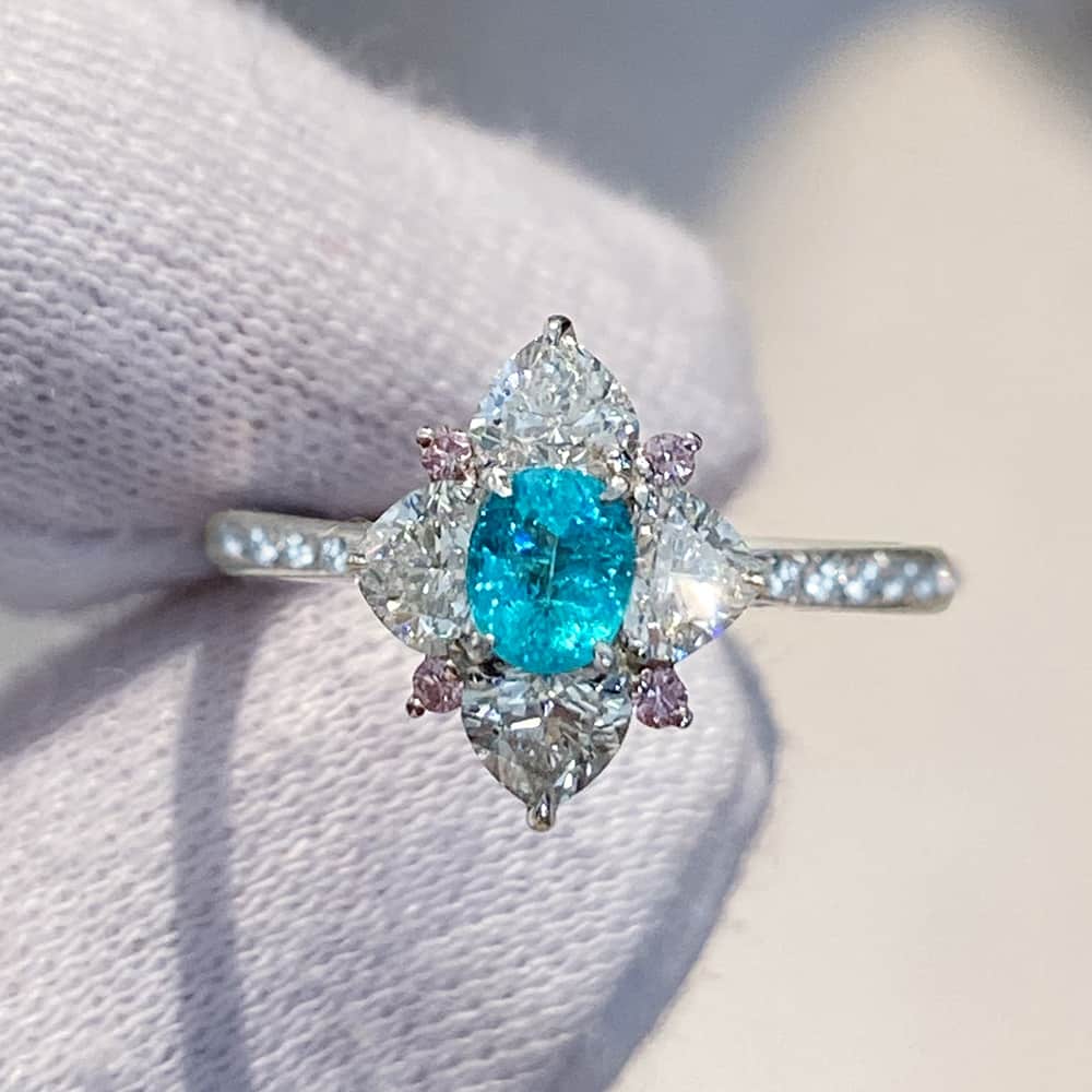 【HANDMADE】PT950 ブラジル産パライバトルマリン 0.36ct ピンクダイヤモンド ダイヤモンド 0.744ct リング