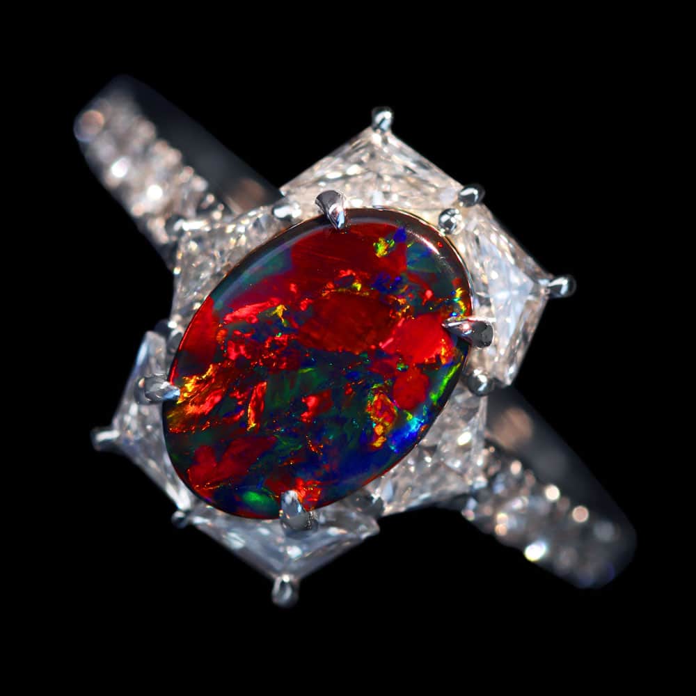 今や見かける機会が非常に難しくなった、オーストラリアの大地から生み出された、赤斑の強い本物のブラックオパール。