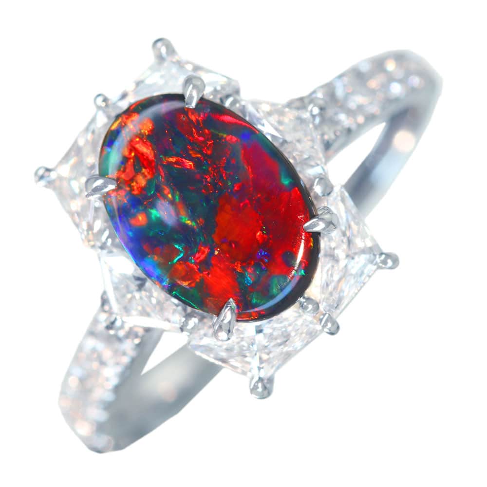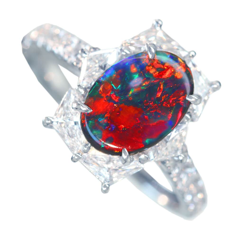 【HANDMADE】PT950 ブラックオパール 1.01ct ダイヤモンド 0.96ct リング
