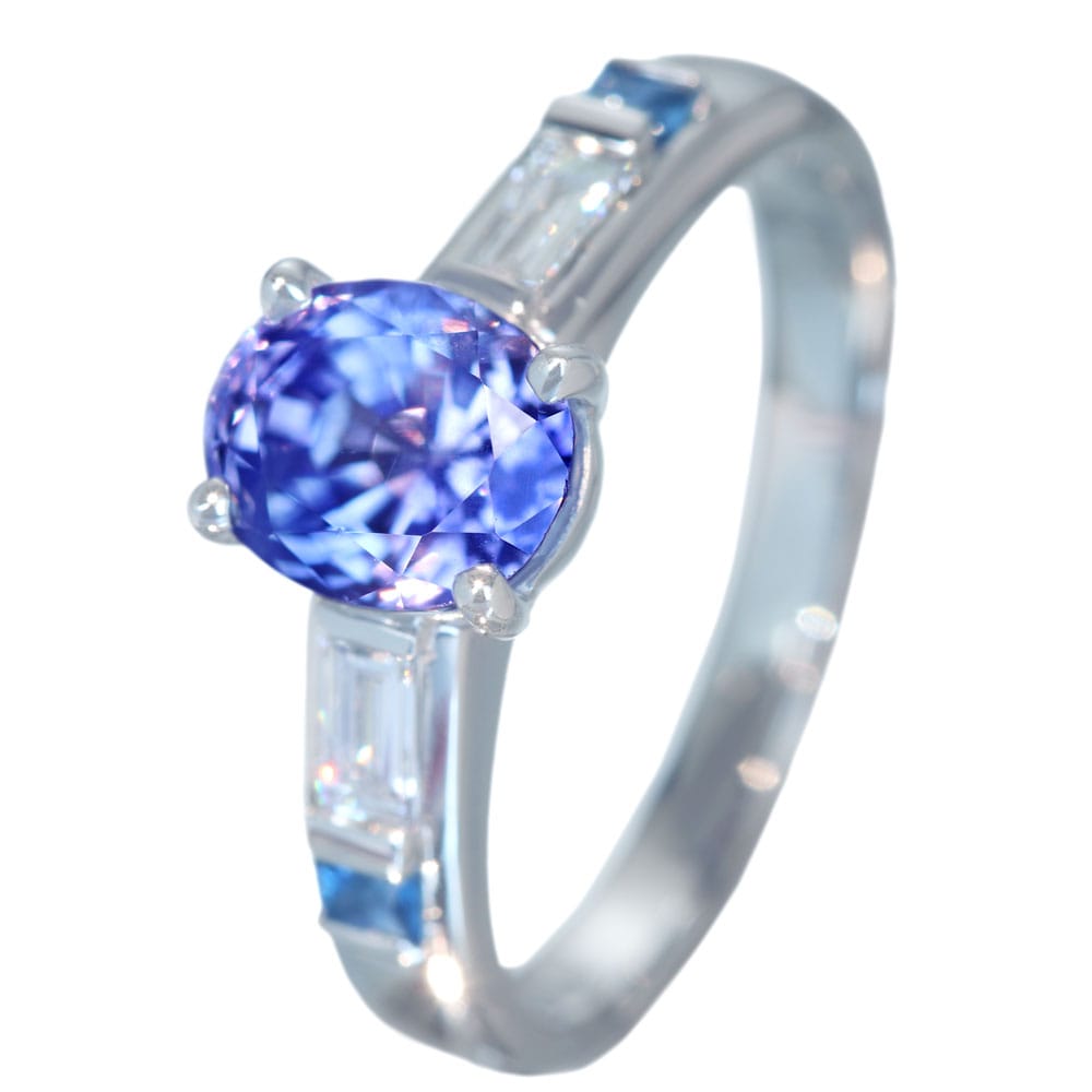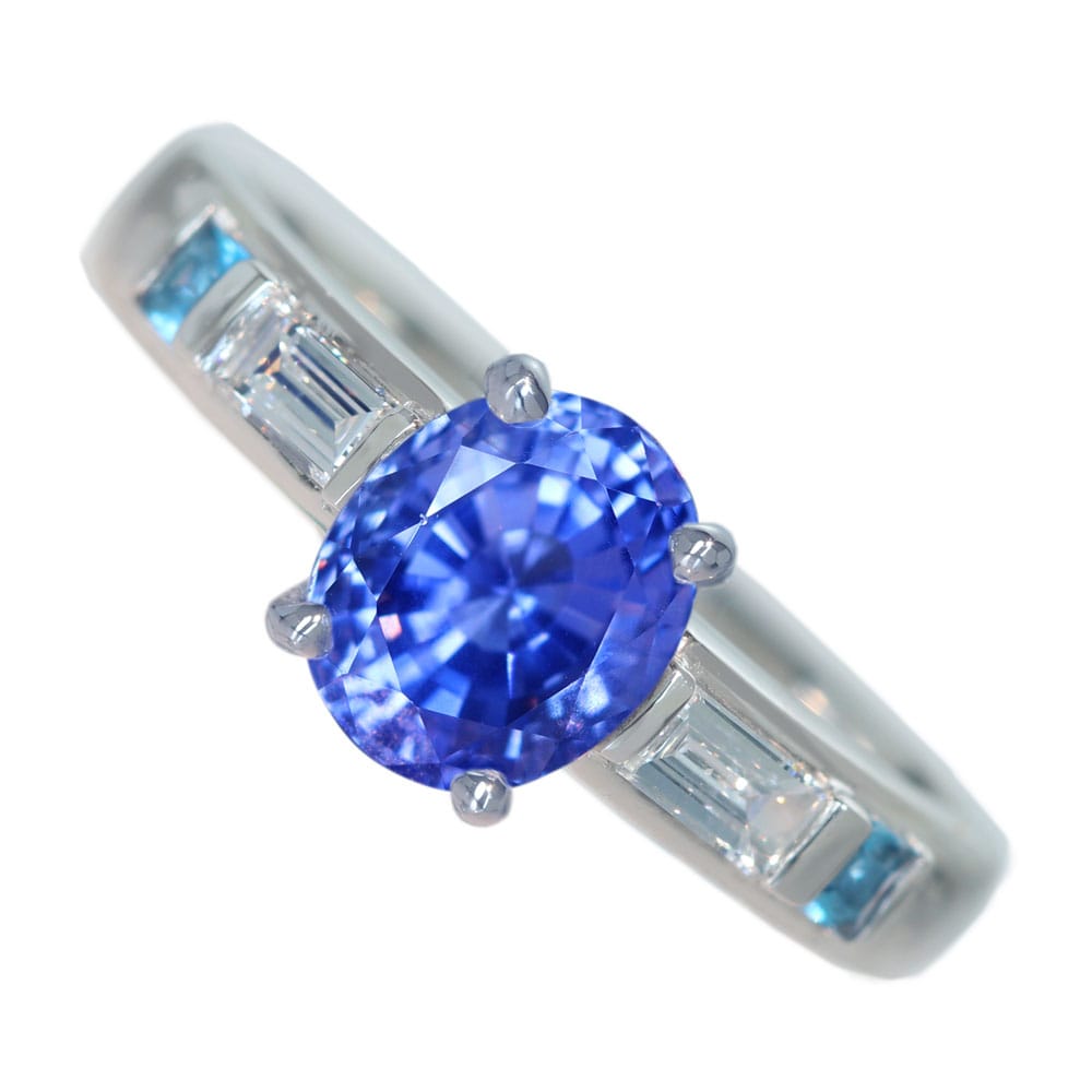 【HANDMADE】PT950 非加熱ブルーサファイア 2.203ct サンタマリアアクアマリン 0.087ct ダイヤモンド 0.186ct リング
