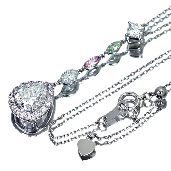 【HANDMADE】PT950 1.109ct H VVS-2大粒ダイヤモンド・鮮やかナチュラルカラーダイヤモンドネックレス※中央宝石研究所ソーティングシート付き