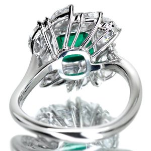 コロンビア産エメラルドの中でも特に美しい色をしたムソー鉱山のものは、カシミール産サファイア、モゴック産ルビーとともに最も貴重なカラーストーンの一つ。