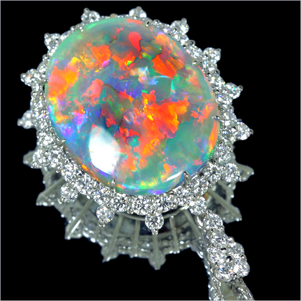 さまざまなカラーのプレイオブカラーは、石自体が発光しているのかと錯覚を覚えるほどに鮮烈で、華やかな輝きです。