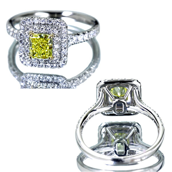 【HANDMADE】PT950 FANCY LIGHT GREEN YELLOW VS2 グリーンイエローダイヤモンド 1.02ct リング ダイヤモンド 0.503ct※GIA鑑別書付き