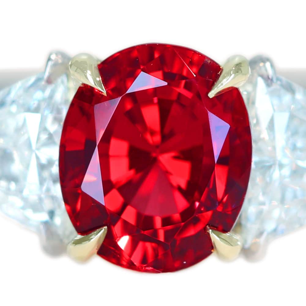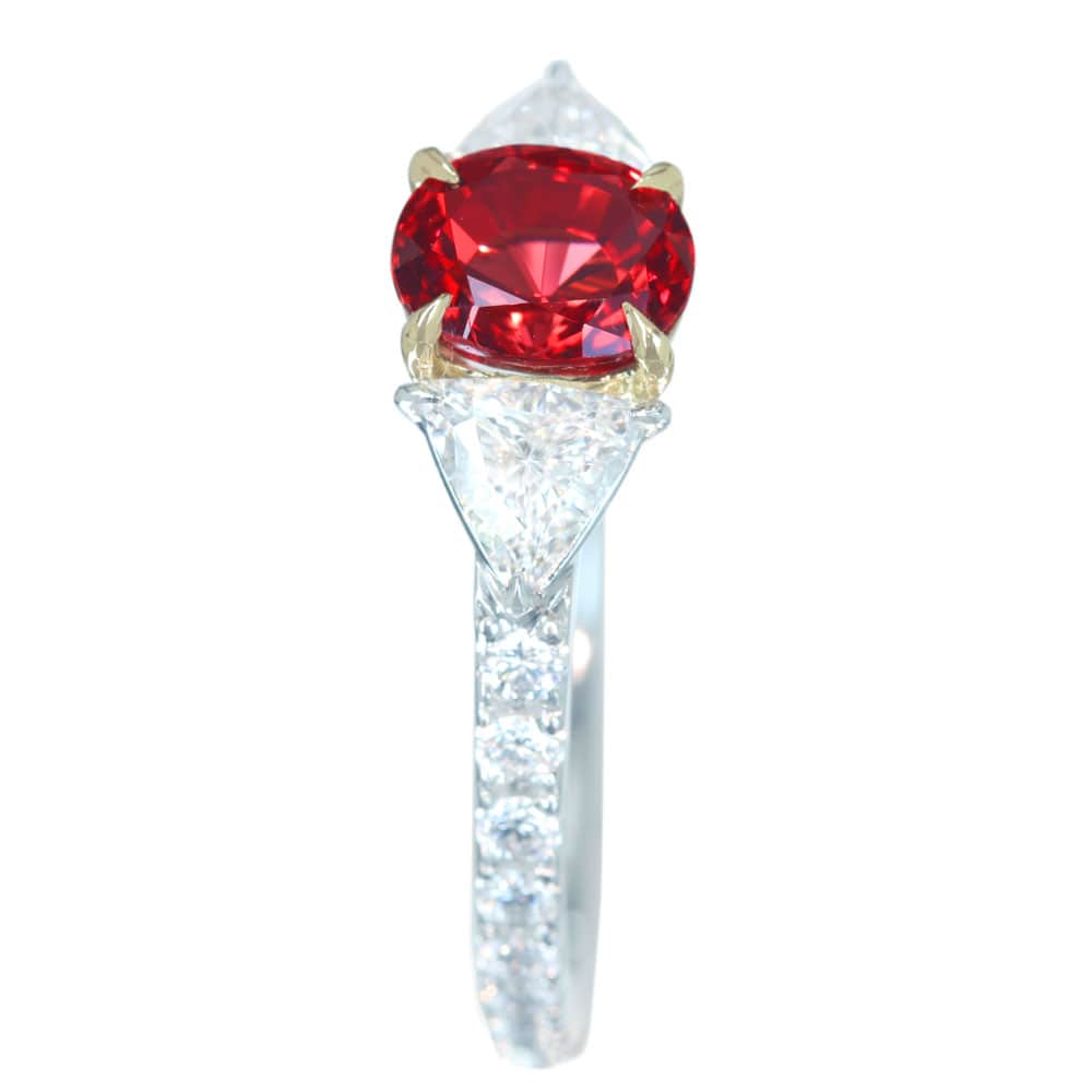 鮮やかなレッドを渾々と放ち続けるレッドスピネルの両脇に