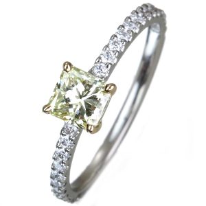 【HANDMADE】PT950/K18 0.534ct LIGHT YELLOW SI-2 イエローダイヤモンド リング 0.24ctダイヤモンド