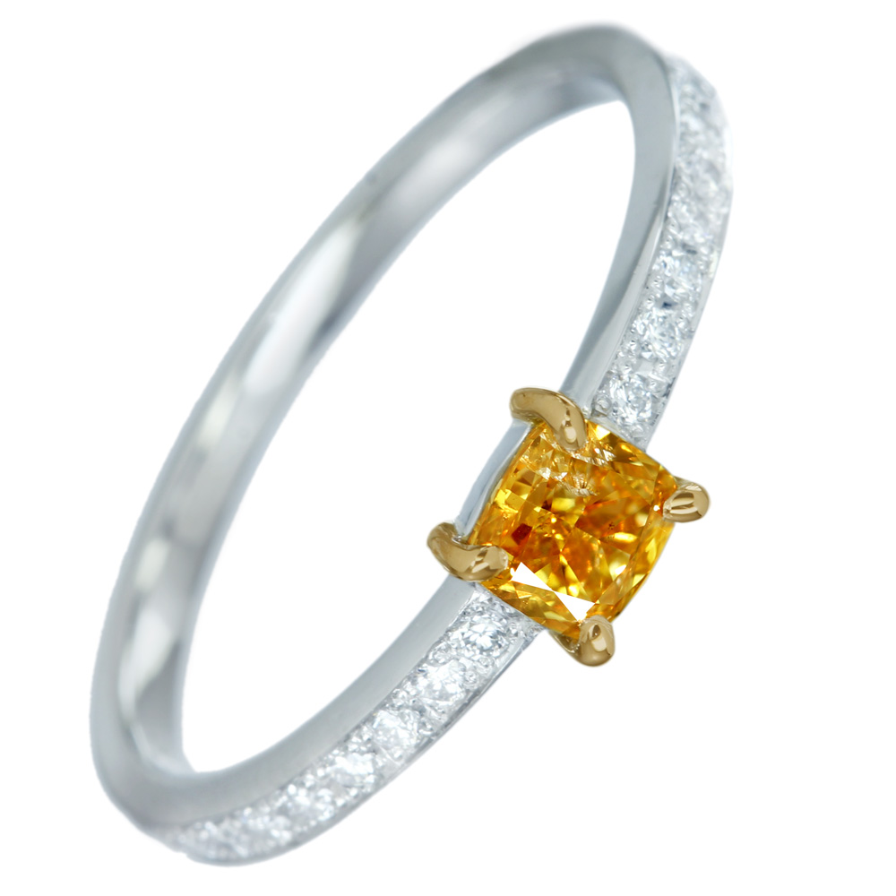 【HANDMADE】PT950/K18PG 天然イエローダイヤモンド 0.320ct FANCY INTENSE ORANGE YELLOW I-1 ダイヤモンド 0.128ct リング[CGL]