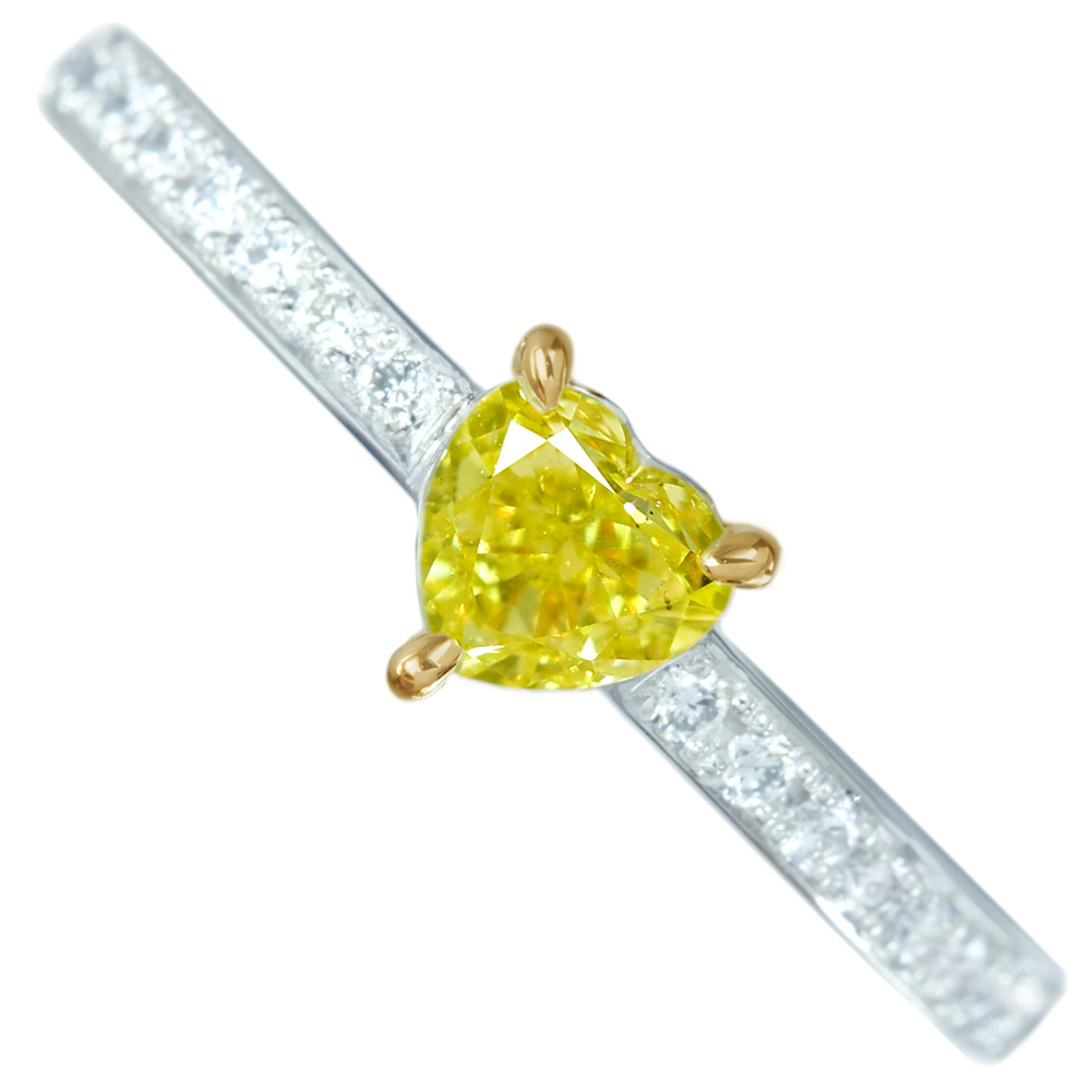 【HANDMADE】PT950/K18PG 天然イエローダイヤモンド 0.381ct FANCY INTENSE YELLOW SI-2 ダイヤモンド 0.128ct リング ハートシェイプ[CGL]