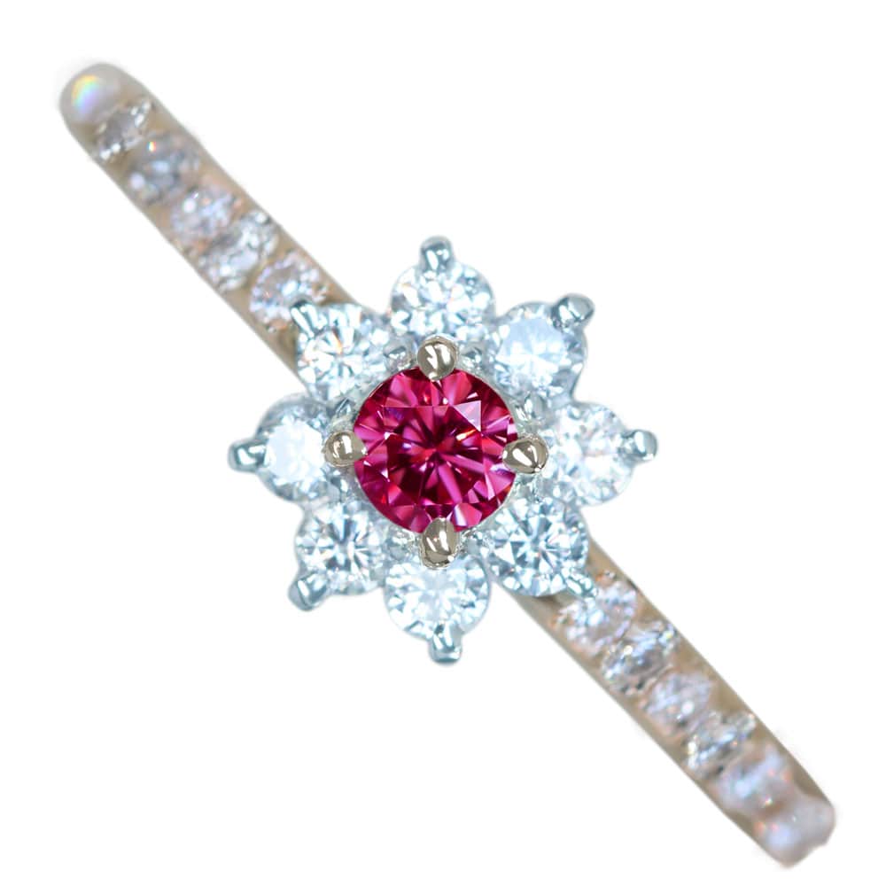 リングの中央を飾るファンシービビッドパープリッシュピンク。